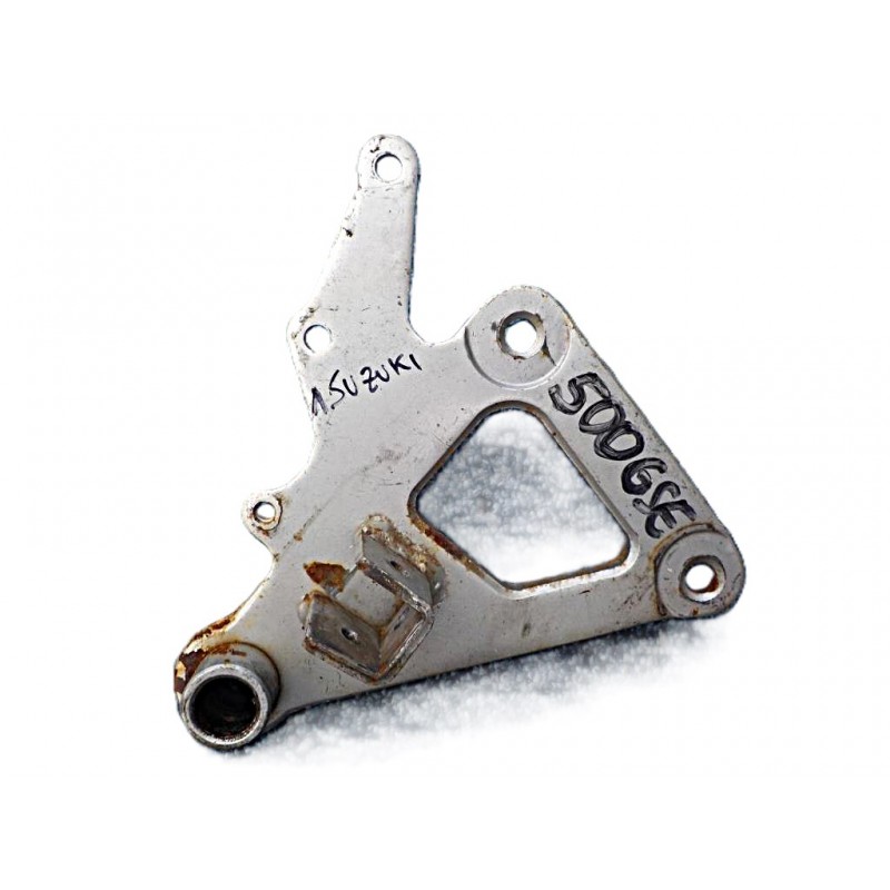 Platine repose-pied droit d'origine pour Suzuki 500 GSE. Cette pièce d'occasion est un support essentiel pour le repose-pied du conducteur. Vendue nue, elle est en bon état général et prête à être installée pour remplacer une platine endommagée. C'est une solution fiable et économique pour la réparation de votre moto.