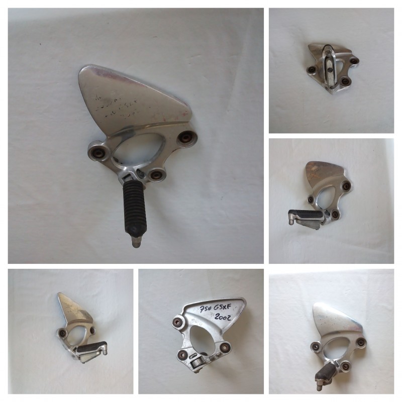 Platine repose-pied conducteur droite d'occasion pour Suzuki 750 GSXF. Idéal pour remplacer une platine endommagée ou manquante, cette pièce assure une position de conduite confortable et sécurisée.
